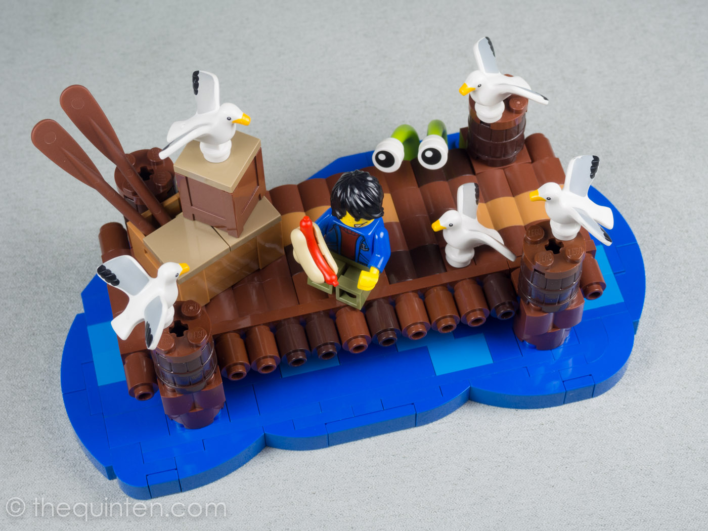 The inspiration for Snack Attack started with five LEGO seagulls laying on my desk. They reminded me of that scene in Finding Nemo with the mob of hungry seagulls all screaming "MINE!" simultaneously. The only problem was Pixar could have hundreds of seagulls for comedic effect whereas I only had five available at my disposal (you'd be surprised at how expensive they are in terms of LEGO bricks!). Even though those were the only seagulls I had, I figured that a humorous scene could still be accomplished by keeping the size relatively small to give the feeling as if there are more seagulls beyond the frame. This was a good example where having some creative limits can become beneficial. The smaller size meant that I could design the model quicker and that it would be much easier to ship around, which really came in handy later on!