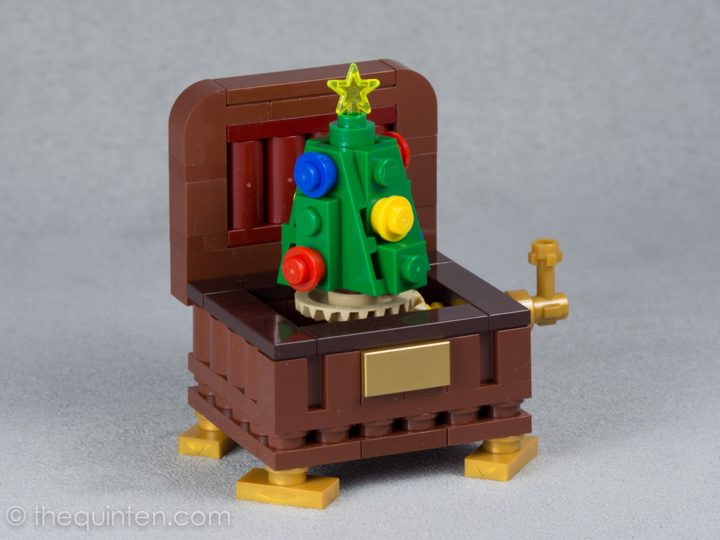 I always enjoy creating small LEGO builds around Christmastime. They are super fun to design, quick to build (very important when you're busy around the holidays!), and they make a perfect addition to any Christmas decorations around the house. After all, a little LEGO makes any display ten times better! This music box achieved all those points, and even delivers that wonderful mechanical movement all wrapped up in a tiny holiday package. Turn the crank and the tree will spin along to the joyful, Christmas tune!*